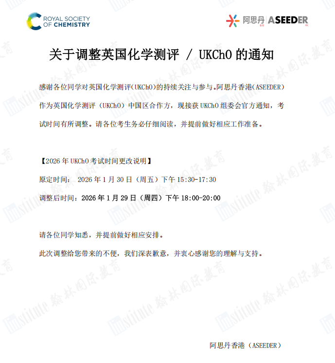 英国最负盛名的高中化学竞赛——2026赛季UKCHO火热报名中!历年真题+解析免费领!