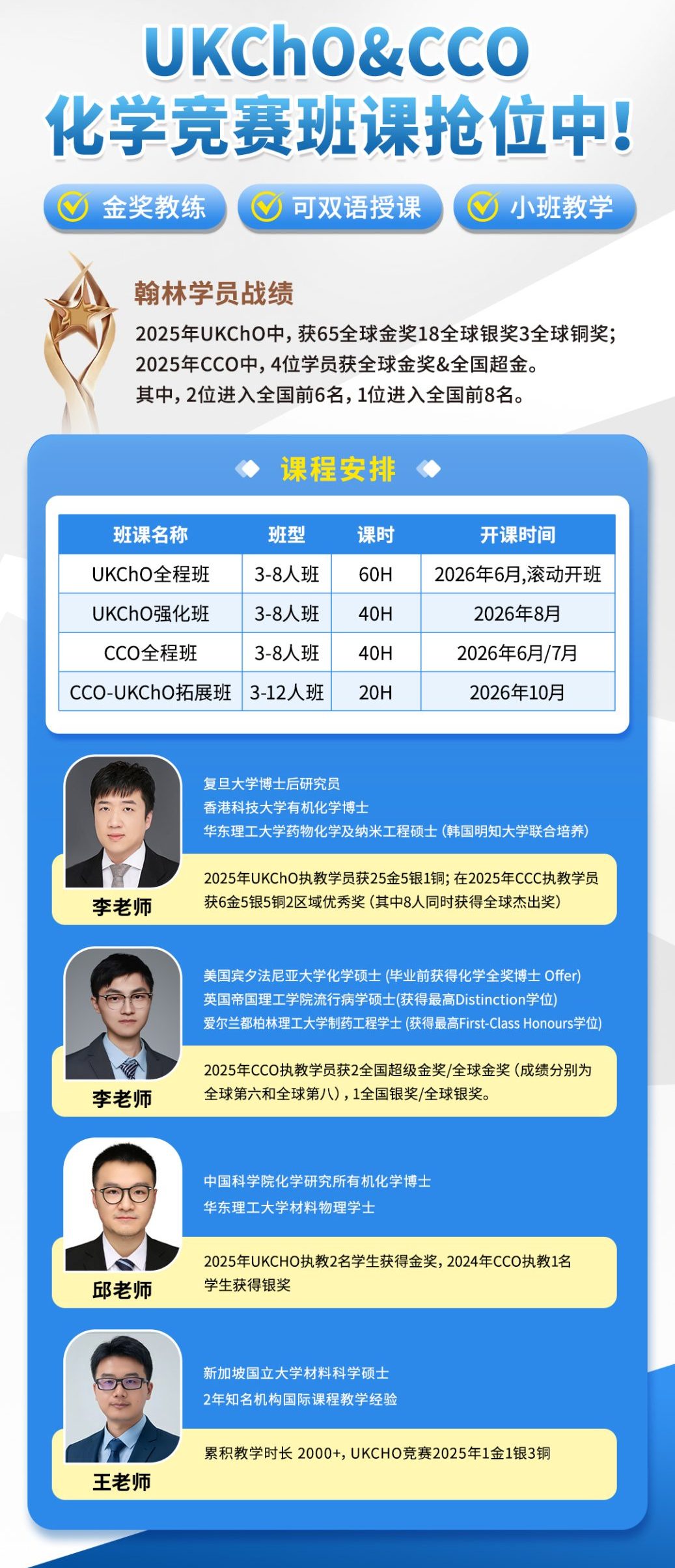 英国最负盛名的高中化学竞赛——2026赛季UKCHO历年真题+解析免费领!