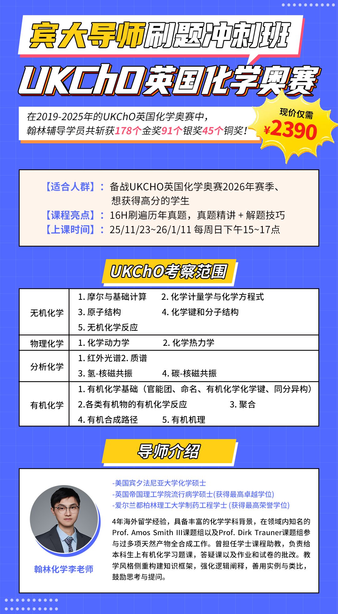 UKChO英国化学奥赛冲刺辅导课程(40H)